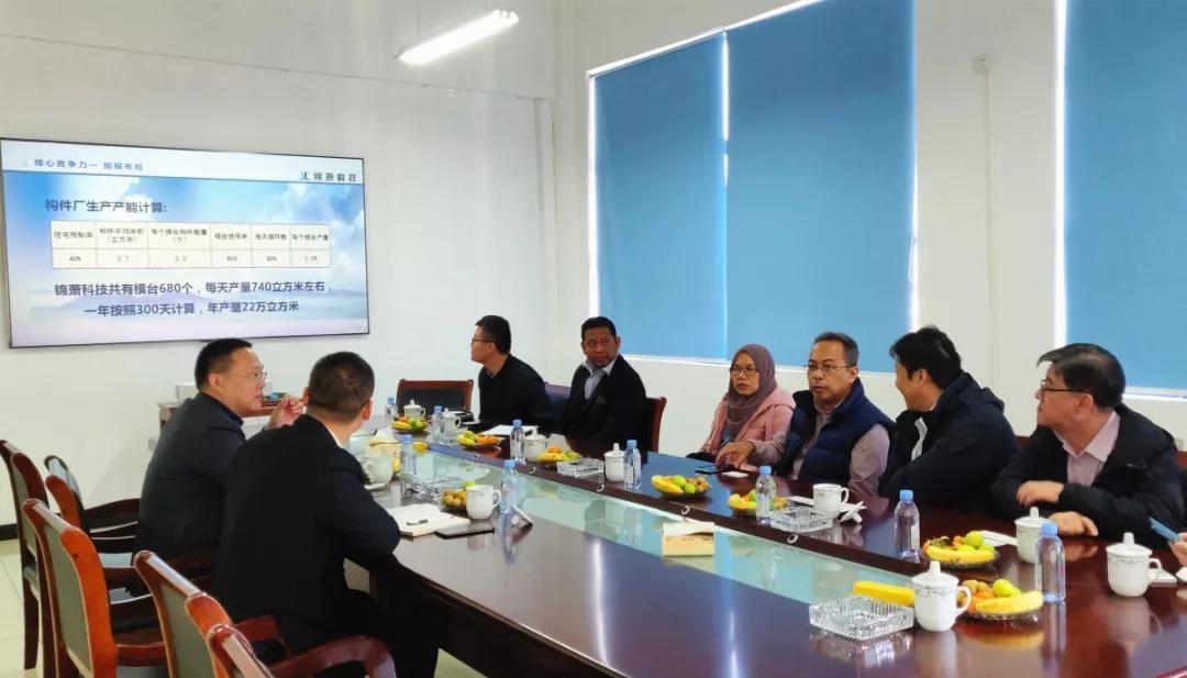 交流会上,李军对代表团一行的到来表示欢迎,并对公司的基本情况作了详细介绍。同时,双方就各国装配式建筑特点进行了探讨。Ahmad Farrin Mokhtar表示希望多了解中国在建筑工业发展方面的情况和成果,通过拜访促进中马两国在建筑工业发展方面的交流,达成未来合作,共同进步。随后,马来西亚客人一行参观了我公司预制构件生产车间。