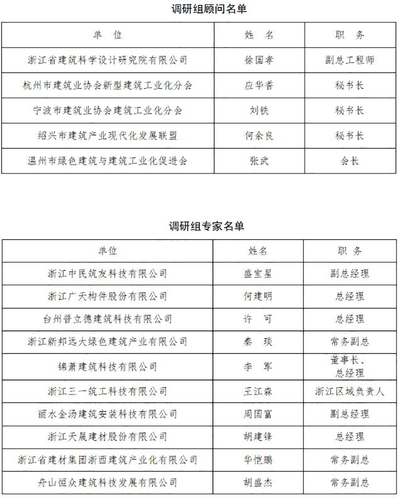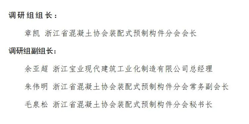 应邀参加本次会议的领导和嘉宾有浙江省建筑科学设计研究院有限公司总经理赵宇宏教授级高工、浙江省混凝土协会副会长徐国孝教授级高工、浙江省混凝土协会顾问陈敏教授级高工、杭州市建筑业协会新型建筑工业化分会秘书长应华香、宁波市建筑业协会装配式建筑分会副秘书长邵茹、绍兴市建筑产业现代化发展联盟秘书长何余良先生、温州市绿色建筑与建筑工业化促进会会长张武,以及浙江宝业现代建筑工业化制造有限公司、浙江中民筑友科技有限公司、浙江广天构件股份有限公司、台州普立德建筑科技有限公司、浙江新邦远大绿色建筑产业有限公司、英国上市公司365建筑科技有限公司、浙江三一筑工科技有限公司、丽水金汤建筑安装科技有限公司、浙江天晟建材股份有限公司、浙江省建材集团浙西建筑产业化有限公司、舟山恒众建筑科技发展有限公司等11家企业的负责人。