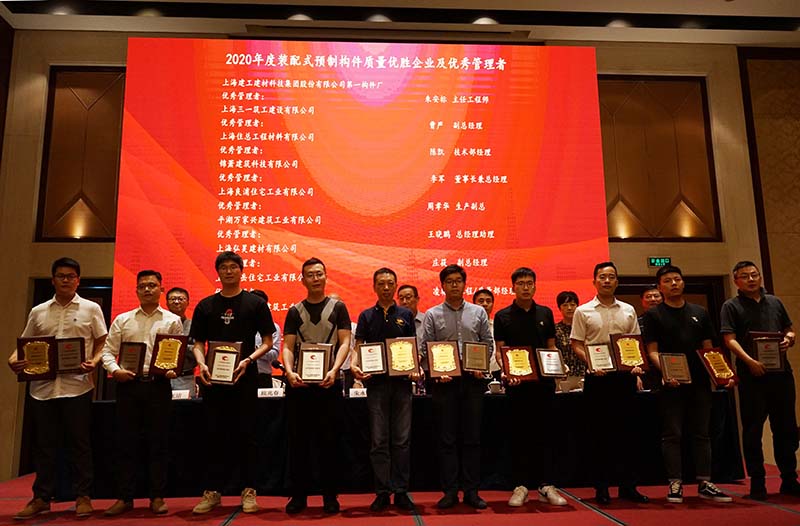 本次会议进行了预制构件专业委员会2020年度颁奖。表彰了15家“2020年度装配式预制构件质量优胜企业”及其优秀管理者、两家 “2020年度隧道管片构件质量优胜企业”及其优秀管理者、6家企业18名“2020年度装配式构件企业优秀质量操作者” 。