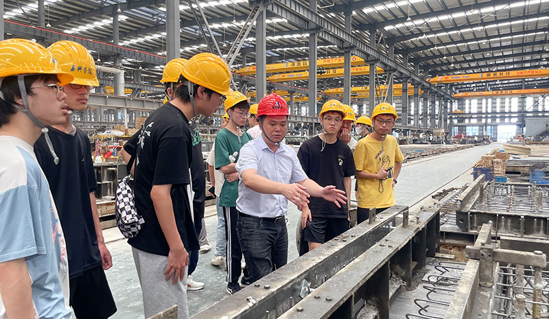 随后,师生一行在相关负责人的陪同下实地参观了公司生产车间,现场感受装配式预制构件的生产工艺和流程,公司技术人员对学生们提出的疑惑耐心地进行了一一解答。