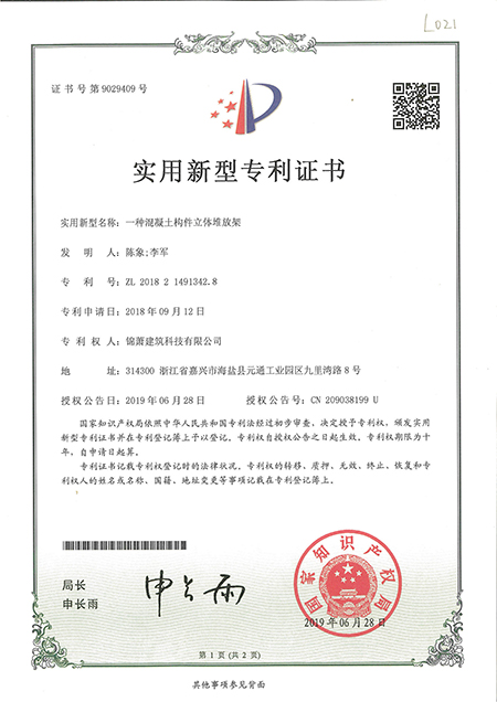 专利证书--一种混凝土构件立体堆放架