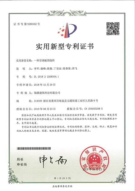 专利证书--一种空调板预制件