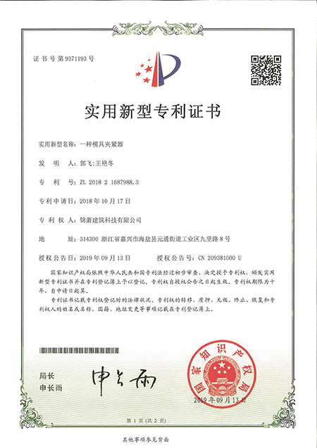 专利证书--一种模具夹紧器